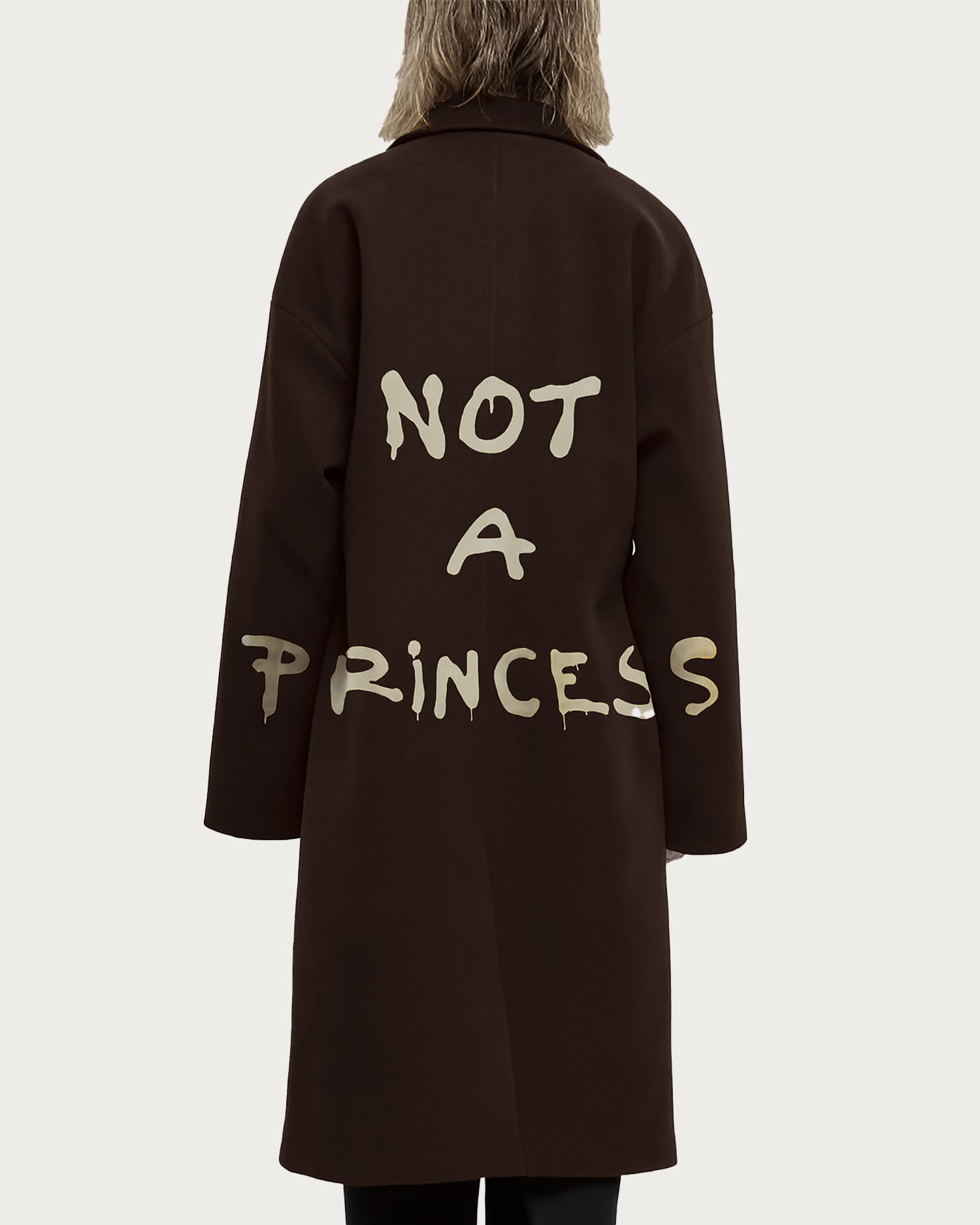 Il cappotto lungo da donna Milord, ora in versione color dark brown, è una rivisitazione rock di un classico della moda femminile. Caratterizzato da una maxi stampa sul retro e da una vestibilità oversize con spalle scese, offre un look casual e contemporaneo perfettamente equilibrato. Inclusa con il capo, la spilla Milord aggiunge un tocco distintivo e unico