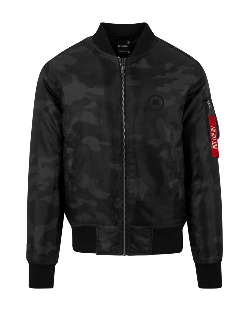 Questo bomber Milord in stampa black camouflage reinterpreta il classico stile aviatore con un tocco moderno e deciso.