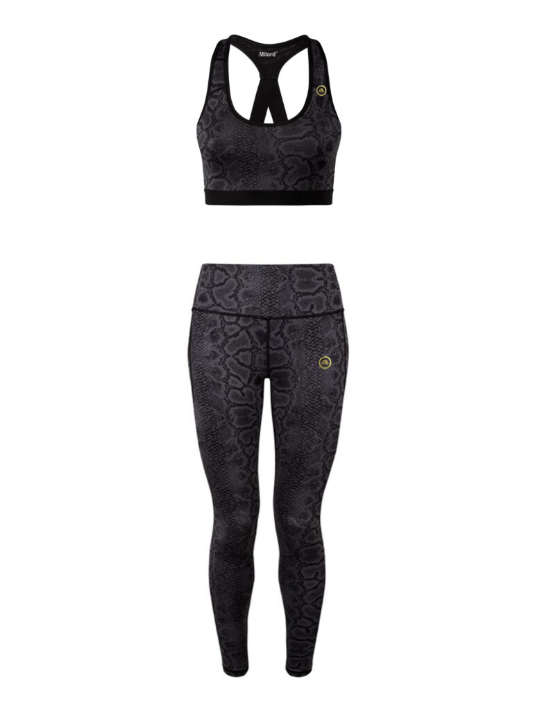 Il nuovo pattern animalier “Snake” raffigura il manto di un serpente è pensato per chi ama lo stile grintoso anche in palestra. Realizzato con tessuto traspirante e ultra-soft per affrontare i tuoi workout con lo spirito giusto! Il logo dorato completa il set aggiungendo il dettaglio del brand